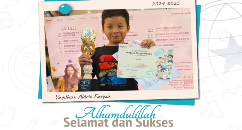 Kak Yaqdhan Aldric Faeyza 4U3 Juara Olimpiade bahasa inggris SD kelas 4 pada Muharram Fest Gresik 2024 Duta Smart Organizer Tingkat Kabupaten